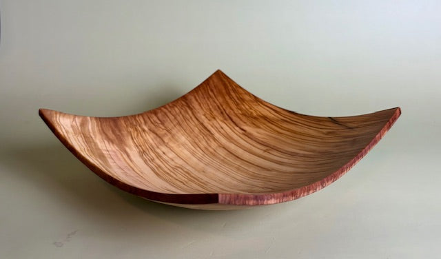 Olive square edge platter that has a food-contact safe oil and wax finish. Buffed to a matte sheen. Great piece to use for your keys, spare coins, wallet, jewelry or use as a small serving platter.